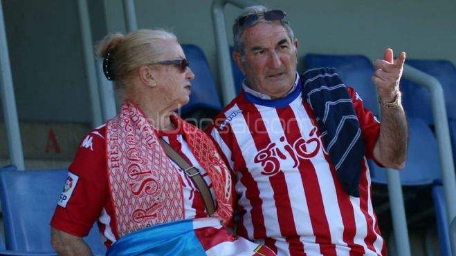 Los seguidores del CD Tenerife recibieron el premio a la mejor afición antes del encuentro y antes de la entrega, pudimos ver un ejemplo de por qué lo son. Este aficionado asistió al Heliodoro con una camiseta en homenaje al fallecido Quini y se fotografió con varios integrantes de la expedición del Sporting. Un precioso detalle.
