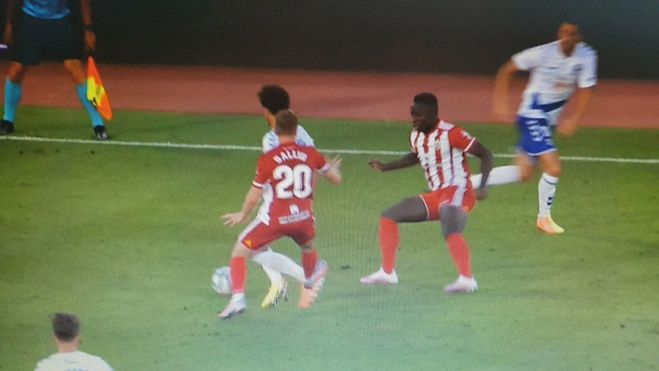 Luis Milla sufrió una dura entrada, por detrás, de Iván Balliu en el minuto 88 de partido. El jugador de la UD Almería clavó los tacos de su pierna derecha en el tobillo izquierdo del centrocampista tinerfeñista. El árbitro del encuentro, Sagués Oscoz, señalizó la falta y amonestó con amarilla al defensor local. Sin embargo, desde el VAR recibió el aviso de que revisase la jugada. Tras visualizar la acción en la pantalla no dudó en retirar la tarjeta amarilla y expulsar con roja directa a Balliu.
