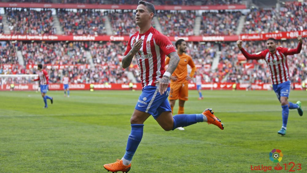 Nano celebra un gol con el Sporting | @laligaSea como fuere, el presente de Nano da suficiente de sí como para no enfocar cada línea a su futuro. El punta tinerfeño seguramente encontrará en el sempiterno juego de parejas de Joseba un rol perfecto para lo que sí es a día de hoy: la única referencia como tal del CD Tenerife (siempre y cuando se considere a Malbašić y Naranjo como dos falsos '9'). Partiendo desde la punta de lanza, Nano tiene la habilidad de aprovechar cada espacio para cerrar partidos, abrir goleadas e impulsar una ola de optimismo en el entorno de la afición chicharrera que anhela, desde hace un tiempo, la figura de un jugador determinante proveniente de su fábrica de talentos.