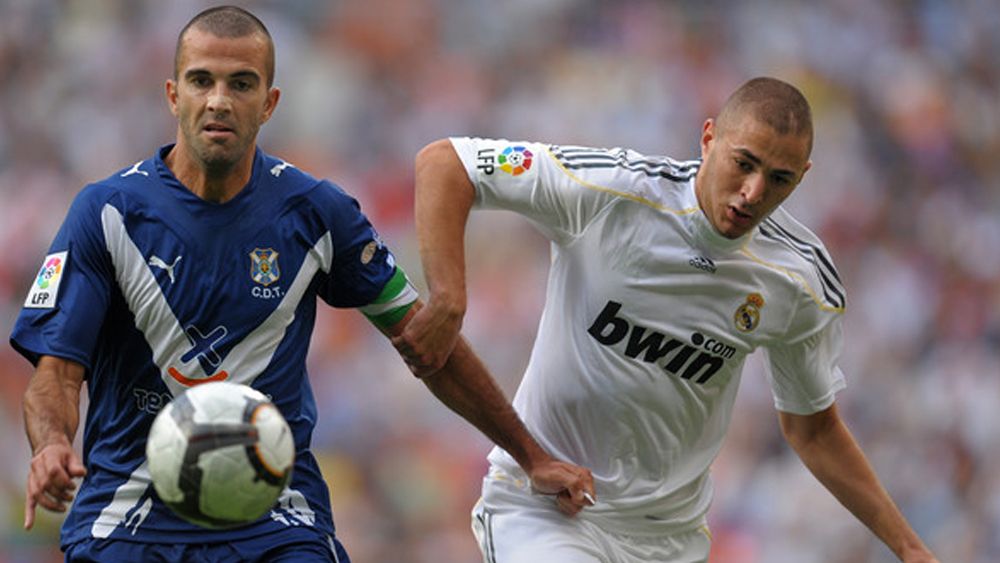 Manolo Martínez pugna con Benzema en el Bernabéu | Getty