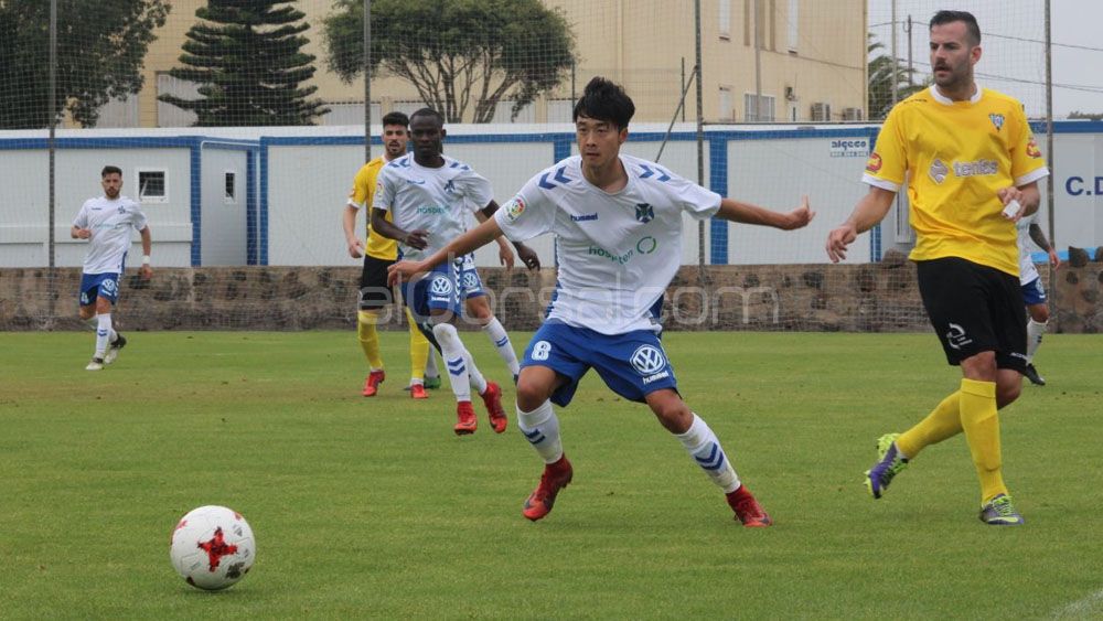 Yuya, CD Tenerife B, recibe el balón | @Matlay07JÓVENES INEXPERTOS: "Es un detalle importante. Los jugadores experimentados como los del Ejea saben cómo jugar estos partidos, y a los míos les viene bien esto para próximas temporadas".