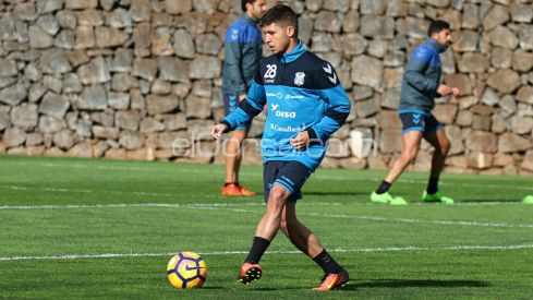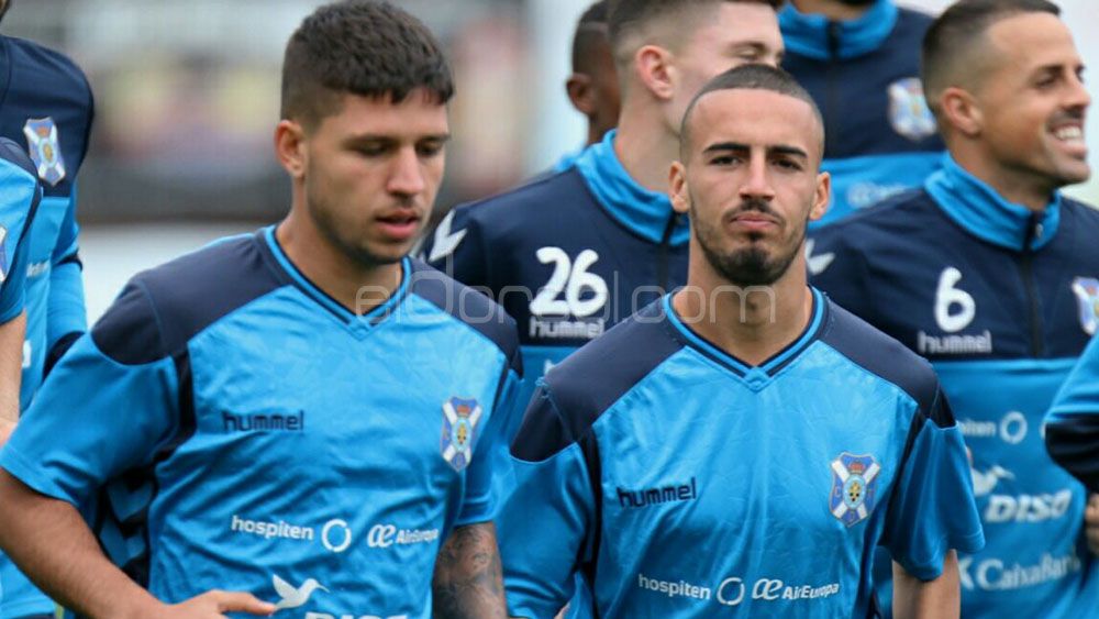 Nahuel (izquierda), junto a Giovanni, en un entrenamiento del CD Tenerife. | @JacfotografoPorteros: Dani Hernández e Ismael Falcón.