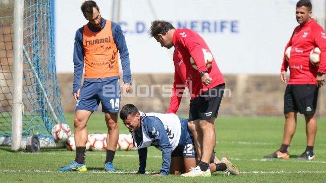 Malas noticias para el CD Tenerife. El equipo dirigido por José Luis Oltra no presume de variantes en la delantera y una de sus piezas, la más importante hasta ahora, se ha retirado del entrenamiento. Nano Mesa recibió un golpe en el tobillo y se le pudo ver retirarse del campo de la Ciudad Deportiva del CD Tenerife acompañado de los servicios médicos del club y con gestos ostensibles de dolor.