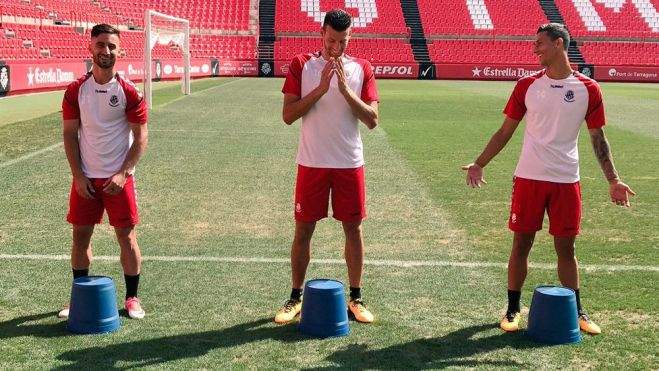 Maikel Mesa y Omar Perdomo en el vestuario del Nástic de Tarragona. | Instagram Maikel MesaEL RESULTADO NO FUE EL ESPERADO