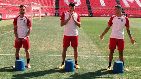 En el vídeo se explica la dinámica del juego, cuanto menos exigente. Cuantas menos veces se caiga el balón o pelota en cuestión, mejor puntuación. Alojarlos en el cubo que hay en la línea de 'meta' elevará la misma, aunque no fue el caso de los jugadores canarios, a pesar de su motivación.
