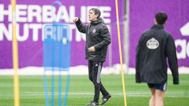 La clasificación, y las diferencias de puntos que existen entre unos equipos y otros no llaman la atención del entrenador del Real Valladolid, quien ha indicado que "nadie puede quedar descartado a estas alturas, y no solo están bien los de arriba, el Eibar o el Almería, sino que hay más que cuentan con grandes plantillas, como el Oviedo, el Girona o el Leganés".