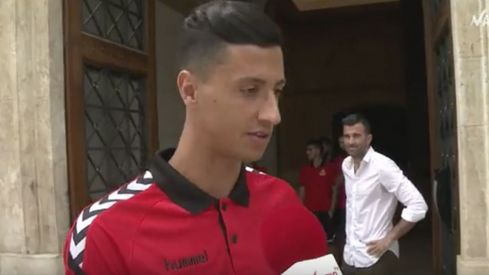 Maikel Mesa, jugador tinerfeño, celebra un gol con el Nástic de Tarragona | @LaLigaOtro factor que ha influido en la decisión del Nástic es la presión mediática que ha sufrido el club con respecto a las negociaciones. El Málaga filtró a la prensa andaluza demasiado pronto que el jugador vestiría la camisa azul y blanca a rayas. La paciencia ha dado sus frutos para el primer rival del CD Tenerife en la temporada 2018-19. Maikel no jugará ese partido pero si está disponible puede ser protagonista de un derbi canario, jugando de amarillo eso sí.