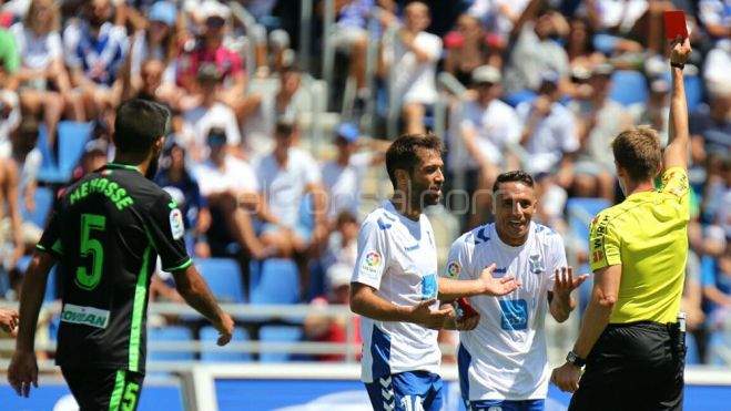 El capitán del CD Tenerife, Suso Santana, fue expulsado ante el Granada CF por doble tarjeta amarilla cuando el equipo blanquiazul aún perdía por 0-1 en el Heliodoro y la sanción no será solo de un encuentro. El de Taco dijo "eres un sinvergüenza" al árbitro de la contienda, según ha recogido en el acta del partido.