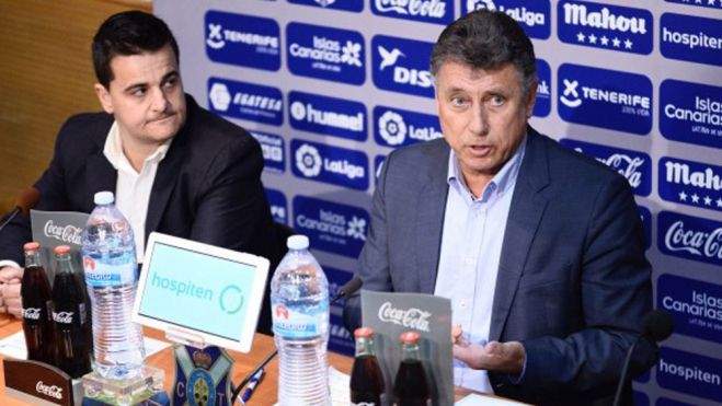 Víctor Pérez Borrego y Nacho Abad, en la presentación de la Red Insular de entradas. |CD TenerifeDurante la rueda de prensa de presentación de la Red Insular, Víctor Pérez Borrego confirmó que "ya está operativa desde hace unos días, pero sobre todo a partir de hoy, y de lo que resta de temporada, y dos campañas más, estarán en marcha estos puntos de venta con Fenamix; en esta fecha, hasta 20, repartidos en diez en el área metropolitana, cinco en la zona Sur y cinco en el Norte". Además explicó que "de los 20, 17 están plenamente operativos y tres lo estarán en los próximos días o antes de finalizar el mes de abril".