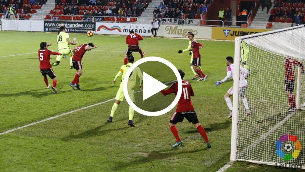 Los tinerfeños brillan en Anduva. Si Maikel Mesa dio el triunfo al CD Mirandés con un buen gol de cabeza, su paisano Roberto Gutiérrez evitó el segundo gol almeriense hasta en tres ocasiones en una misma jugada.