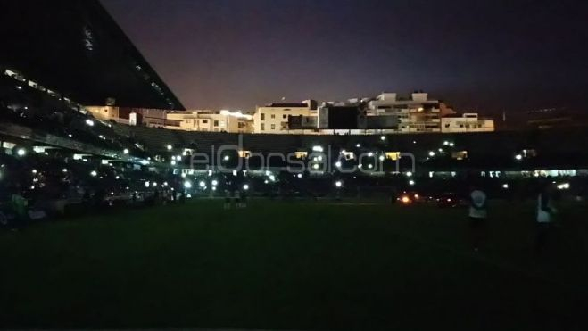 El Heliodoro Rodríguez López, a oscuras, ante del CD Tenerife - RCD Espanyol de Copa del Rey | @Jacfotografo“Aquí, atrapado en el ascensor del Heliodoro”; “Suerte que no tengo claustrofobia, que alguien llame a un técnico. Muyayos al rescate”. Ahora causa risa, pero en ese momento, imaginamos cómo estaría Martín, solo, sin entretenimiento, con incertidumbre…
