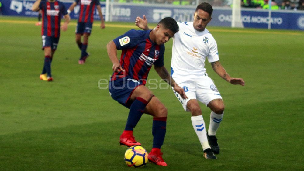 Suso presiona a Cucho en el Huesca-Tenerife | Pablo SeguraEL DESPLAZAMIENTO A LA ISLA: “Todos lo equipos nos sentimos incómodos, históricamente cuando jugamos en Tenerife, y de igual modo ellos cuando juegan fuera. Eso no significa que no puedas ganar pero es complicado. No obstante, estamos muy motivados. Queremos ganar porque nos daría el doble de moral que la que nos dio el lunes”