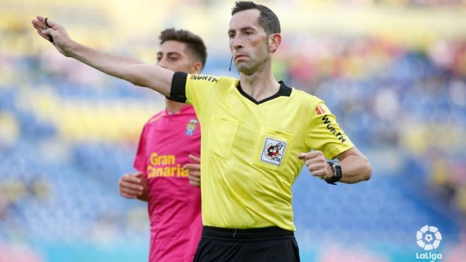 Gorka Sagués Oscoz, el elegido. Al árbitro del derbi que disputarán este domingo (18:15 hora canaria) UD Las Palmas y CD Tenerife no le pillará 'de nuevas' impartir justicia entre amarillos y blanquiazules. Ya fue el encargado de pitar el clásico canario que se celebró en la temporada 2013-14 en el Heliodoro Rodríguez López, que acabó con una contundente victoria para el equipo entonces dirigido por Álvaro Cervera (3-0).