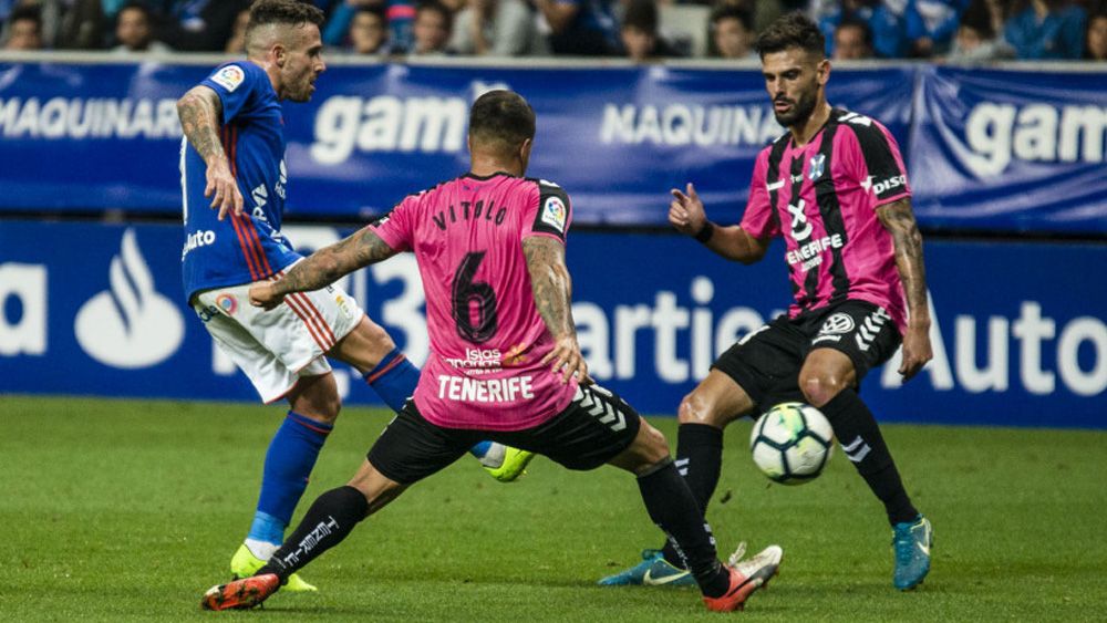 Tayron del Pino hace una lectura positiva del punto sumado por el CD Tenerife en Oviedo este miércoles.
