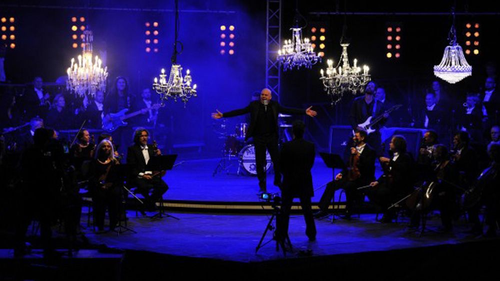 Ni un pelo de tonto, junto a la Orquesta Sinfónica, en la grabación del videoclip. | CD Tenerife300 BLANQUIAZULES EN EL HELIODORO