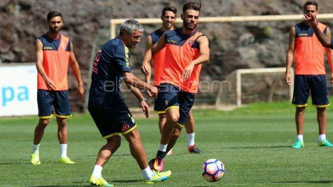 Tyronne y Jonathan Viera porfían en un entrenamiento en El Mundialito. | @jacfotografoDespués de muchas especulaciones el CD Tenerife tiene a su primer refuerzo de enero, tal y como dijo Martí, del 20 de enero en adelante llegarían las incorporaciones y así ha sido. Ni Chuli, ni Kike Sola, tampoco Nano ni Naranjo, el primer atacante que llega a la entidad tinerfeña procede de la isla vecina, Gran Canaria.
