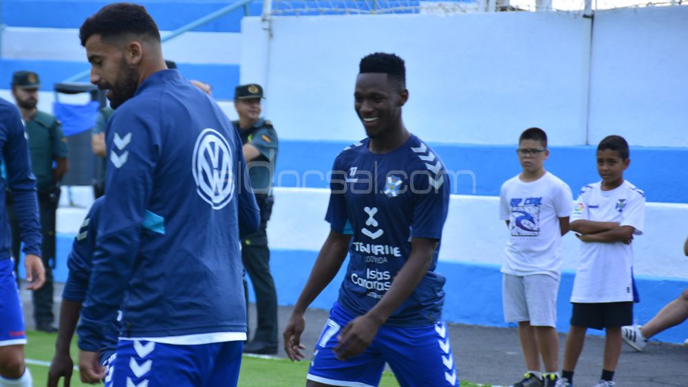 Chilunda, sonriente en un rondo | @ivangg_tfeEn el CD Tenerife no están del todo satisfechos con el rendimiento del jugador en los entrenamientos, según informa LaOpinión de Tenerife, y empiezan a valorar la apuesta que realizó el club con su contratación. No venía de prueba, Chilunda llegó como un jugador desconocido para el gran público pero con cosas positivas que aportar. De momento no se ha ganado la confianza del técnico Etxeberría, ni como titular ni como revulsivo y de los cuatro delanteros en plantilla es el que menos ha participado. Tendremos que ver como avanza la competición y si el rendimiento mejora de Chilunda pero a día de hoy una opción es su salida en el mercado de invierno.