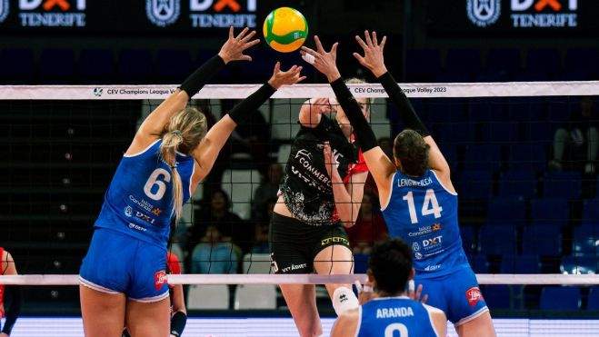 El Haris cayó este martes a manos del LKS Commercecon Lodz, actual líder de la liga polaca, en el segundo duelo de fase de grupos de Champions League, disputado en el Santiago Martín. Pese al contundente 0-3 (17-25, 21-25 y 18-25), las blanquiazules pelearon cada uno de los sets. De este modo, las tinerfeñas despiden un 2022 en el que se alzaron con tres coronas, la de Copa de la Reina, la de Liga Iberdrola y la de Supercopa, así como un subcampeonato de Challenge Cup y la clasificación para la vigente edición de la Champions League.