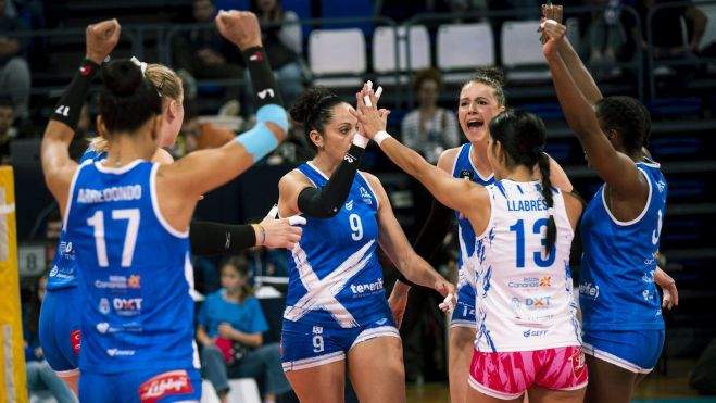 El CV Haris venció por 1-3 (18-25, 23-25, 25-21, 23-25) frente al CV Sayre CC La Ballena en el duelo canario disputado en el Centro Insular de Deportes de Gran Canaria. El cuadro de Juan Diego García dominó los dos primeros episodios, frenando el juego de las locales donde brillaron Domingas Soares y Bea Novoa. La lesión de Lisbet Arredondo en la recta final del tercer set frenó las acciones de un conjunto tinerfeño que pretendía cerrar por la vía rápida. El bloque de Alberto Avellaneda recortó distancias y buscaba el desempate, hasta que la reacción tinerfeña liderada por Belly Nsunguimina y Julie Lengweiler las permitió voltear el set y cerrar el triunfo.