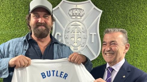 El Heliodoro vivió esta jornada ante el Burgos una emocionante remontada para conmemorar la despedida de Carlos Ruiz, de Ramis y también homenajear a los artífices del ascenso a Segunda División de 1983. Entre los asistentes más inesperados a esta tarde de fútbol y sentimiento blanquiazul se encontraban en actor Gerard Butler, mundialmente conocido sobre todo por su papel protagonista en el film '300', así como el productor Philip Walley, que se encuentran en Tenerife grabando "Juego de Ladrones 2".