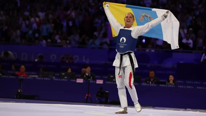 La húngara Viviana Marton, que se proclamó campeona olímpica en taekwondo en la categoría de -67 kilos, sorprendió al término de su combate con la croata Aleksandar Perisic en la final y sobre el tapiz, sacó la bandera de Canarias, donde ha pasado su infancia.