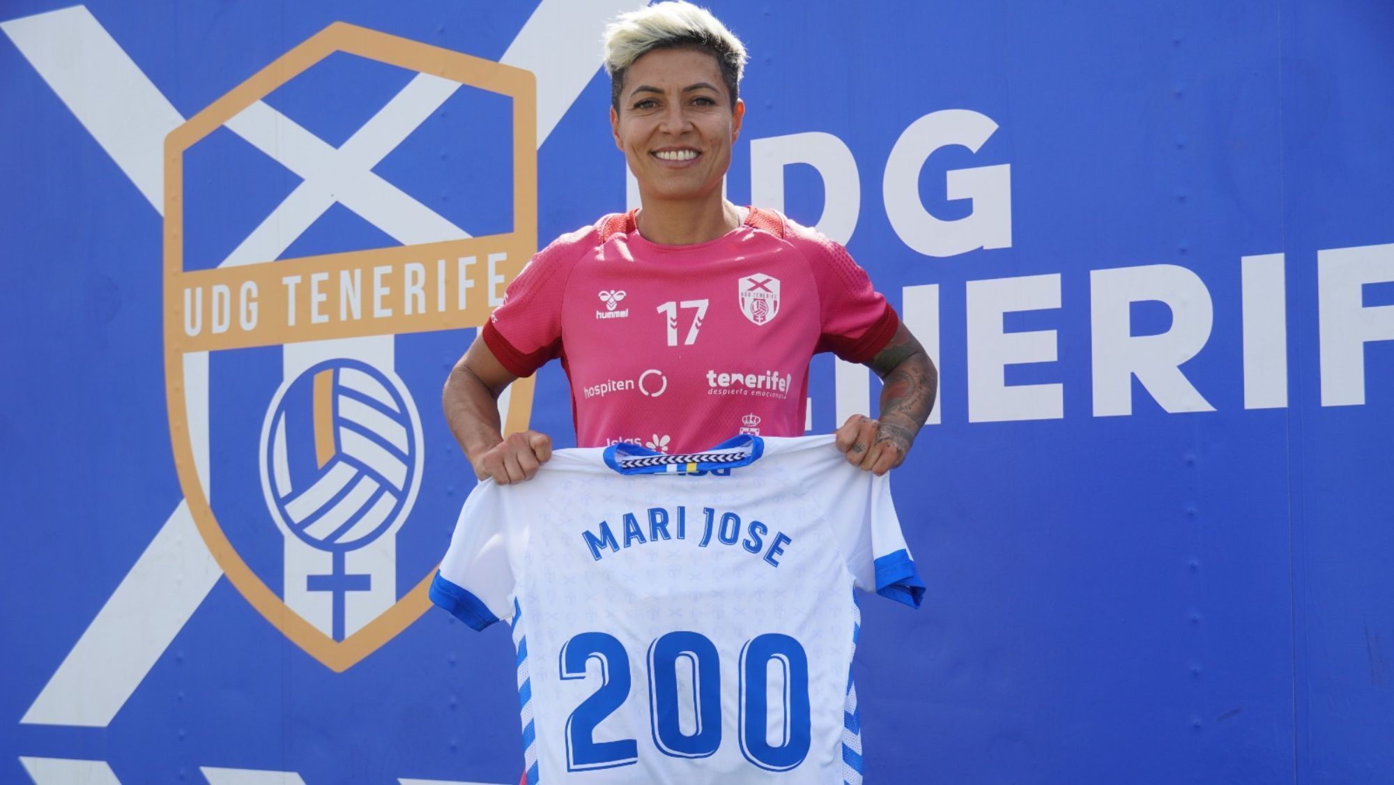 Si existe una jugadora franquicia en la UD Granadilla Tenerife, un talento que inspira y además es emblema del club, sin duda es el de María José Pérez. En su dilatada trayectoria, la jugadora de 39 años acumula suficientes argumentos cualitativos en forma de goles, regates y compromiso con la camiseta azul y blanca pero, además, la máxima goleadora en la historia del club ha ingresado recientemente en el selecto grupo de futbolistas que han alcanzado los 200 partidos con el equipo en la élite, un honor que comparte con compañeras de vestuario como Silvia Doblado o Pisco.