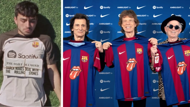 Un manojo de periódicos (de papel) con la noticia en la portada de The Daily Diamond. Una repartidora, al estilo Papergirl más clásico, en plena tarea por las calles de una urbanización cualquiera. Y de fondo, los acordes del Start Me Up. Así comienza el vídeo que anuncia la colaboración entre el FC Barcelona y los Rolling Stones —acuerdo por el que el equipo azulgrana lucirá ante el Real Madrid el logo de la banda (la famosa boca con la lengua fuera) en el frontal de su camiseta para promocionar el nuevo disco del grupo británico— y que tiene al futbolista canario Pedri como uno de sus protagonistas destacados.
