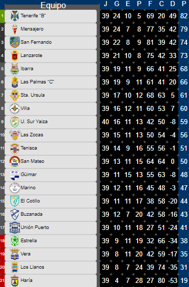 De este modo, ya quedan definidos los puestos de playoff, salvo el tercer y cuarto puesto, que se disputarán San Fernando y el mencionado equipo lanzaroteño. El CD Mensajero se asegura jugar la próxima edición de la Copa del Rey, aunque con ínfimas opciones de acabar como campeón. Para ello, debe esperar una derrota del Tenerife B en Güímar y, lograr los tres puntos en San Mateo.
