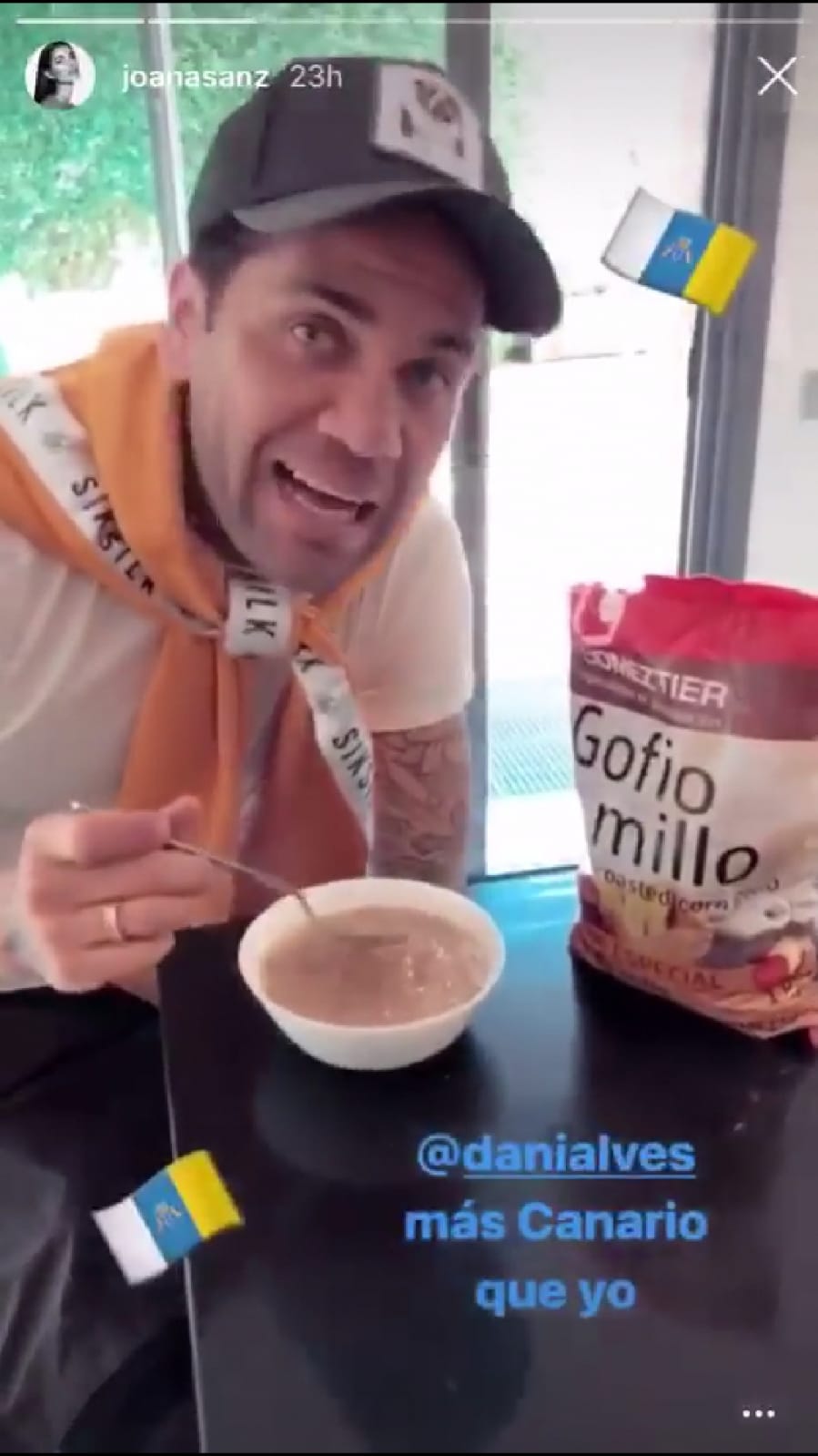 Dani Alves disfruta de un tazón de leche y gofio | Instagram joanasanz