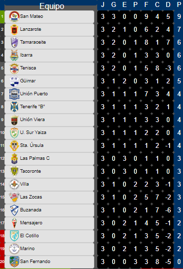 CD Mensajero, Las Palmas C, San Fernando...varios son los candidatos para el ascenso que no han arrancado la competición de la forma deseada. Ninguno de los mencionados ha podido lograr aún la victoria, al igual que un irregular CD Marino, con dos empates y una derrota en su haber. El equipo de Zeben Hernández es penúltimo a pesar de sumar en Tacoronte este domingo.