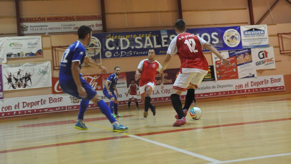 Estrenó el marcador Ayose Suárez, demostrando el olfato de gol que posee y por el que fue fichado por el equipo orotavense. Un minuto más tarde Kevin Yanes marca el segundo, tras una buena jugada individual. A falta de 10 minutos para finalizar la primera mitad el Salesianos sumaba cinco faltas, algo a lo que también nos tienen acostumbradas debido a intensidad defensiva de los 12 jugadores. No obstante, el equipo supo defender manteniendo el balón. Jugando con posesiones largas hasta que a falta de 3 minutos, Carmelito Guillama transformó el tercer gol del partido culminando una buena transición ofensiva.