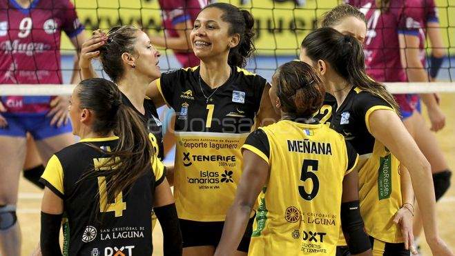 Las jugadoras del CV Aguere se desean suerte antes de un partido. | @JacfotografoEl Haro Rioja Volley es, sin duda, uno de los mejores equipos de la categoría. Afianzado en la zona noble toda la temporada, las pupilas de Hugo Gotuzzo no han sido capaces de vencer a los rivales directos, ni en Superliga ni en Copa, por lo que esperan vencer a Aguere Tenerife y vengarse de la derrota en Copa. Un ataque liderao por Dibbern, sin olvidarnos de jugadoras de tanta calidad como Raquel BRun o María Schegel. Las jarreras destacan también en defensa, con las centrales Mami Diouf y Carlota Conrado y la incombustible Patricia Llabrés en recepción.