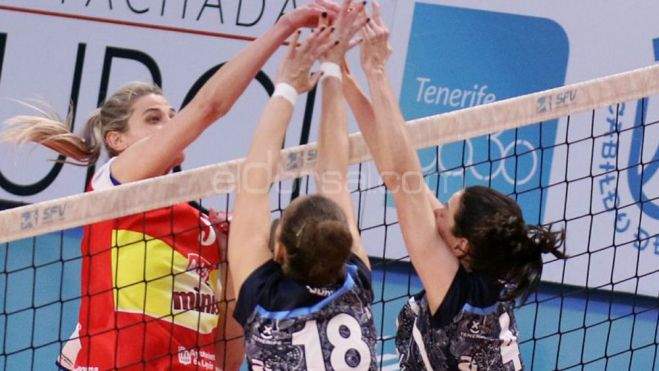 Las riojanas han conseguido recuperar así su lugar en lo más alto del podio tras vencer a un luchador Arona Tenerife Voley por 3-0.