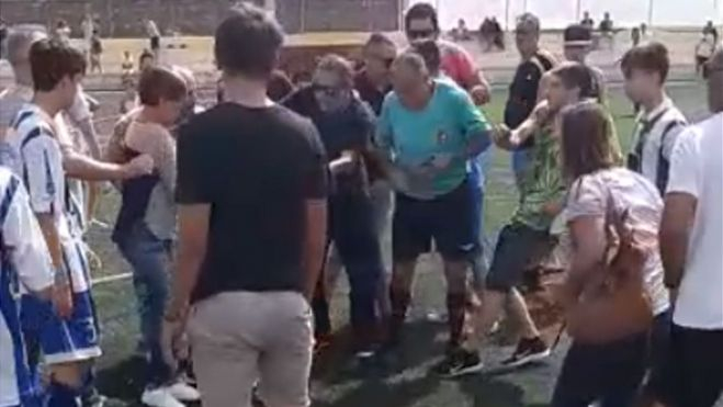 Una lacra que no cesa. El fútbol de Tenerife vuelve a ser triste protagonista por un nuevo acto de violencia en sus categorías base. Esta vez, en el encuentro entre CD San Lorenzo y CD Unión Isora un árbitro fue agredido por un energúmeno, en plena tángana entre ambos conjuntos, y por la espalda. Acto seguido salió corriendo, pero ya había sido grabado por un aficionado presente en el terreno de juego.