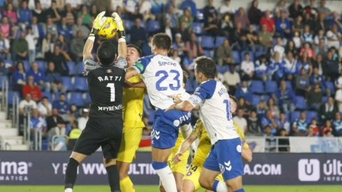 Poco más de dos minutos tardó en llegar el primer susto para el Tenerife. Pase a la espalda hacia línea de fondo para Álex Calvo y centro raso atrás, al corazón del área. Incrédulo, Mellot despejó y echó una miradita de reproche a los compañeros. Espabílense, o como se diga en francés.