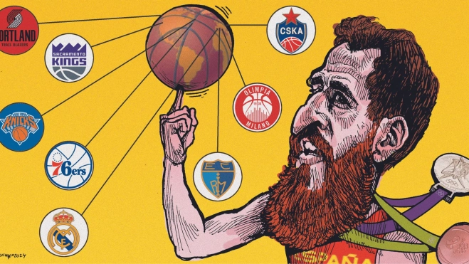 Apenas quedaba por consumir un minuto de aquella final cuando Sergio Rodríguez hizo su debut en el baloncesto profesional. Calzaba entonces 18 años recién cumplidos y acababa de sustituir a una leyenda del Estudiantes, Nacho Azofra —eliminado con cinco faltas personales— cuando el base tinerfeño cogió la pelota, cruzó a toda mecha el parqué del Palau Blaugrana, dribló a un par de rivales, esquivó zarpazos, salió ileso de un intento de tapón y anotó dos puntos. Aquello fue más que una canasta, aquello fue una declaración de intenciones. A él, imberbe y con la mochila llena de ilusiones, le daba igual tener enfrente a Juan Carlos Navarro, Dejan Bodiroga o Roberto Dueñas. Su forma de interpretar y descifrar el juego iba a ser la misma ahí, debajo de los grandes focos de la industria, como en la habitación de su infancia —donde soñaba con meter canastas como esa y dar asistencias de todos los colores— arropado por los pósters de Kevin Garnett, Allen Iverson, Kobe Bryant o Jason Kidd.