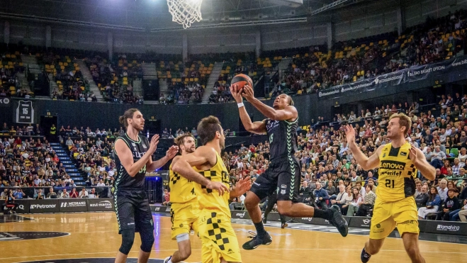 El primer intento de triple entró, obra de Doornekamp. Pero la mejor noticia en el perímetro llegó desde las muñecas de Fitipaldo. Lanzó dos, y fueron para dentro. Entonces Adam Smith se cabreó y metió dos triples seguidos, uno de ellos espectacular, desde el rincón y con Jaime Fernández encima. A continuación, para compensar, el madrileñó combinó con maestría para habilitar al canasta de Shermadini.