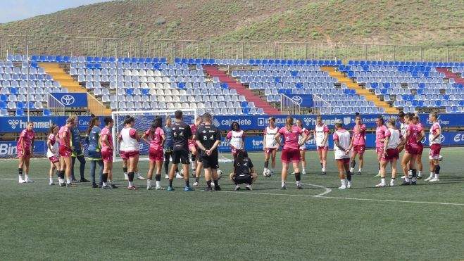 El pasado 10 de septiembre se presumía como una fecha histórica en el deporte español con el estreno de la Liga F, la competición profesional de fútbol femenino. Pero la huelga arbitral, fundamentada en las reclamaciones salariales de las colegiadas, retrasó el inicio una semana más. Así, las jugadoras del Athletic Club de Bilbao se desplazaron en balde hasta Tenerife y pisaron el césped de La Palmera solo para fotografiarse con las jugadoras del Granadilla. Al igual que el resto de la jornada, el encuentro entre tinerfeñas y bilbaínas quedó aplazado y fnalmente se disputará el próximo 1 de noviembre.