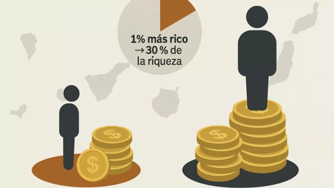El Atlas de la Riqueza de España señala a Canarias como uno de los territorios más desiguales de España en términos patrimoniales. El estudio, elaborado a partir de datos de la Agencia Tributaria, el INE y el Instituto de Estudios Fiscales, indica que el 1% más rico del Archipiélago concentra cerca del 30% de toda la riqueza regional, un nivel que sitúa a las islas en el grupo de cabeza de la desigualdad junto a Madrid (35%), Baleares (28%) y Cataluña (28%).