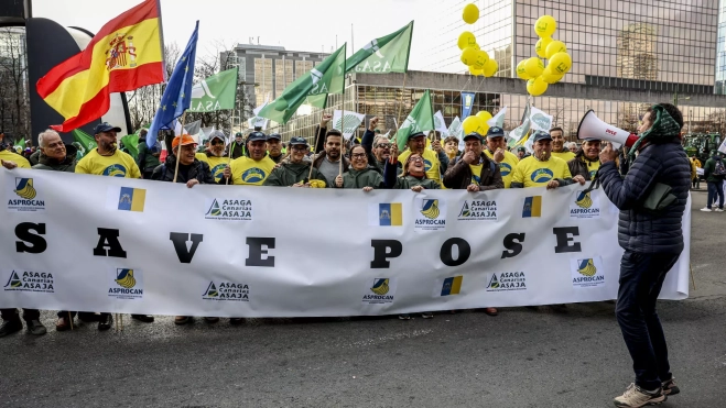 Canarias ha estado representada en la protesta por la Asociación de Agricultores y Ganaderos de Canarias (ASAGA) y la Asociación de Organizaciones de Productores de Plátano de Canarias (ASPROCAN), que han participado desde primera hora en una concentración que ha recorrido el barrio europeo de Bruselas.