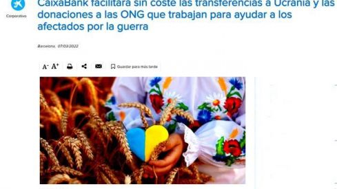 La banca ha sido uno de los sectores más proactivos. Caixabank acaba de poner en marcha una plataforma de donativos que aglutina las principales entidades humanitarias -Unicef, Acnur, Cruz Roja, Save The Children…- acreditadas por su trabajo sobre el terreno con el pueblo ucraniano.