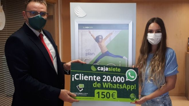 Laura obtuvo ese premio por ser la clienta 20.000 de la entidad que ha utilizado whatsapp como servicio de atención digital al cliente.