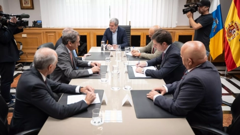 El presidente nacional de las Cámaras de Comercio, José Luis Bonet, junto a los responsables de ese mismo organismo en Gran Canaria y Santa Cruz de Tenerife, Luis Padrón y Santiago Sesé, se han reunido con el presidente del Gobierno de Canarias, Fernando Clavijo. En el encuentro han solicitado al Ejecutivo ayuda para llevar a cabo esta nueva iniciativa, que liderarán las Cámaras canarias.