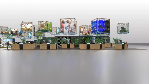 El stand vuelve a caracterizarse por desplegar un importante potencial comunicacional, alta calidad de diseño y un enfoque innovador, además de contar con varios reclamos visuales para generar notoriedad. El principal de estos reclamos son los 20 escaparates aéreos en forma de cubos transparentes, de gran impacto visual, que funcionarán como enormes escaparates de la oferta turística canaria y donde se proyectarán imágenes audiovisuales de las ocho islas, así como de cuatro segmentos: sol y playa, activo y de naturaleza, de cultura y patrimonio y gastronómico.