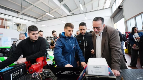 Durante la visita, el alumnado mostró el trabajo que realiza en las aulas-taller del Departamento de Transporte y Mantenimiento de Vehículos, donde se forman en preparación técnica, ajustes y optimización de vehículos de competición.