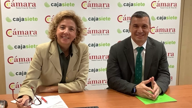 La directora de la Cámara de Comercio de Santa Cruz de Tenerife, Lola Pérez, y el director de Riesgo Global de Cajasiete, Luis Díaz, presentaron este jueves los resultados del Boletín Sectorial de Comercio correspondiente al cuarto trimestre de 2023, un informe que confirma el incremento medio anual de las ventas minoristas hasta alcanzar el 7,3%.