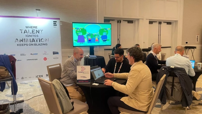 Un total de ocho estudios del Archipiélago, junto al técnico del sector audiovisual de Invertir en Canarias de Proexca, Javier Pascual, participaron en esta cita con el objetivo de dar a conocer las ventajas fiscales, el talento local y el ecosistema empresarial de las islas.