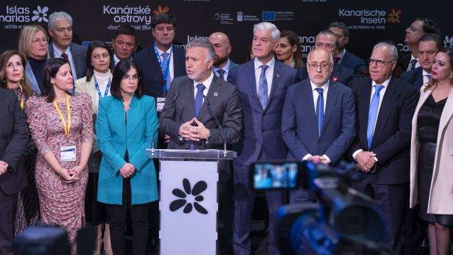 Unas positivas cifras que protagonizaron la inauguración del stand del archipiélago en Ifema, que realizaron el presidente de Canarias, Ángel Víctor Torres, y la consejera de Turismo, Industria y Comercio del Gobierno de Canarias, Yaiza Castilla.