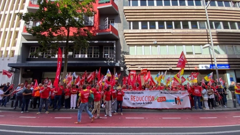 Un centenar de sindicalistas reclaman a las puertas de las patronales reducir la jornada laboral
