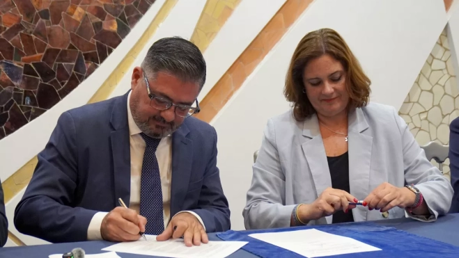 El contrato lo firmaron el presidente del RCNGC, Pity Sánchez, y la presidenta de la Autoridad Portuaria de Las Palmas (APLP), Beatriz Calzada.